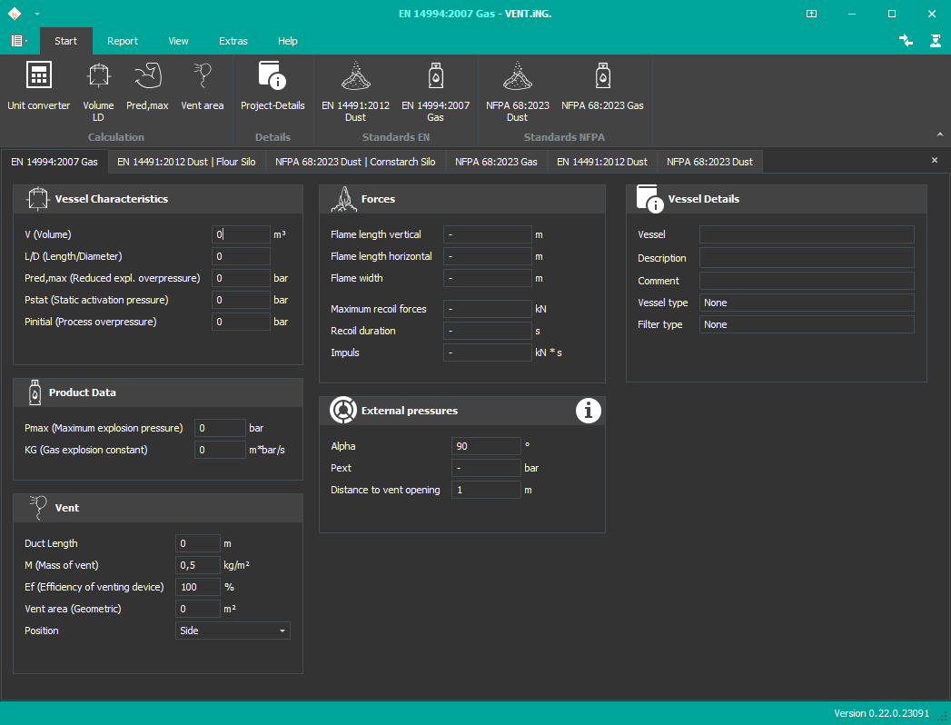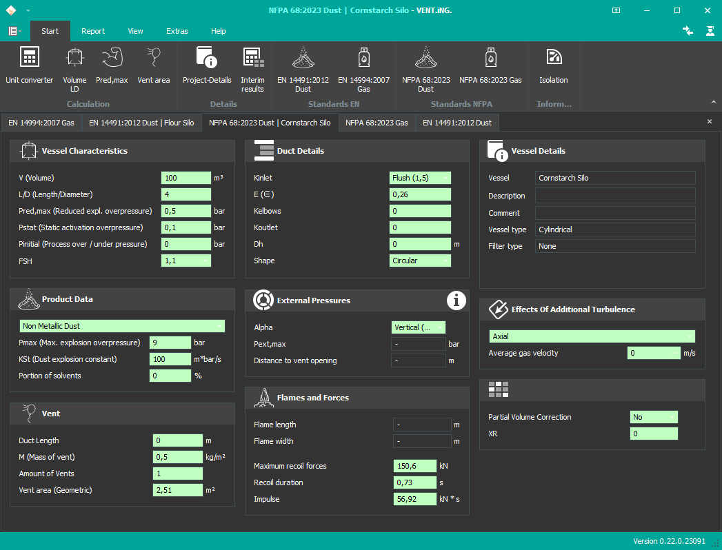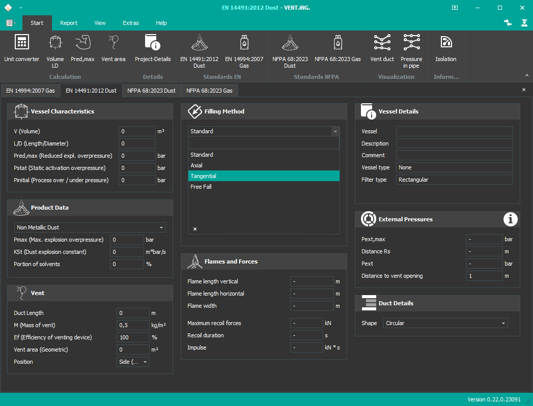 With VENT.iNG., a software is available which supports the explosion protection expert to apply the two most common explosion VENT.iNG. approaches in the world, following EN and NFPA.